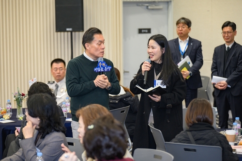 2025 새빛만남- 수원, 마음을 듣다'에서 자주 볼 수 있는 풍경이다. 시민이 건의 사항을 이야기하면 담당 부서 책임자가 건의한 시민과 일정을 조율해 최대한 빨리 현장을 찾아 문제점을 확인하고, 개선 대책을 수립한다.