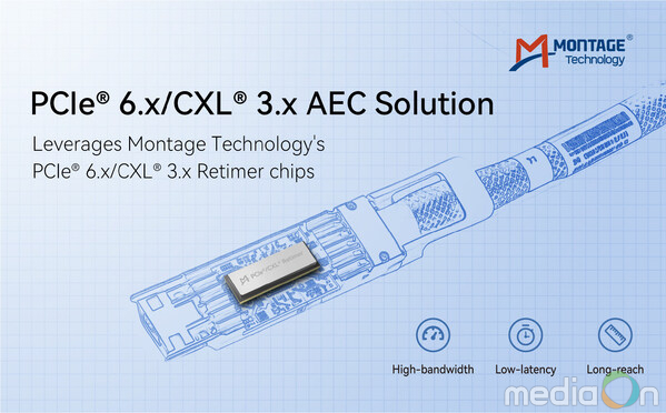 미디어온 관리자 기자 | 상하이, 중국 2026년 1월 27일 -- 몽타주 테크놀로지(Montage Technology)가 고성능 PCIe 6.x/CXL 3.x 기반 액티브 전기 케이블(Active Electrical Cable, AEC) 솔루션을 출시했다고 발표했다. 본 솔루션은 데이터센터 아키텍처가 인트라 랙(intra-rack)에서 더 복잡한 인터 랙(inter-rack) 구조로 진화하는 흐름에 대응하도록 설계됐으며, 몽타주 테크놀로지의 PCIe 6.x/CXL 3.x Retimer를 채택해 하이퍼스케일러 및 고성능 서버 플랫폼을 위한 고대역폭•저지연 인터커넥트를 제공한다.
