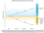 9개월 분석 결과 복합 통합 헌팅턴병 등급 척도가 기저치 대비 평균 0.64점 개선-성향 점수 가중치 적용 시 증상 발현 환자의 9개월 예상 자연 경과 악화 수치인 -0.73점 대비