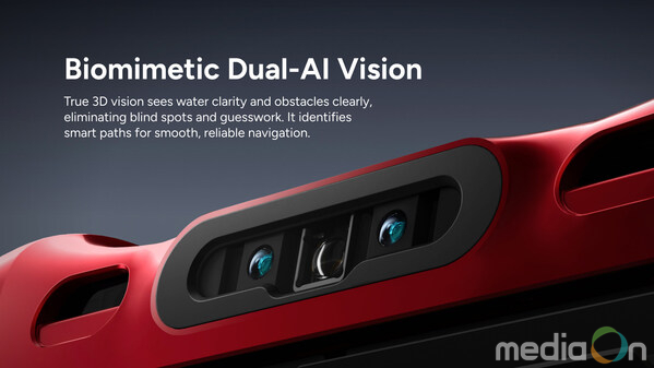 이 수영장 청소기의 핵심 경쟁력은 생체 모방 듀얼 비전(Biomimetic Dual-Vision) 시스템에 있다. 기존 센서와 달리 이 시스템은 시차(parallax) 원리를 활용해 실제 3D 깊이 데이터를 생성하며, 계단, 경사면은 물론 40츠 깊이의 얕은 태닝 레지까지 정밀하게 식별한다. 이러한 시각 정보는 비전 인텔리전스(Vision Intelligence) 시스템으로 전달되어 업계 최초의 AI 타깃 시스템(AI Target System)을 구동한다. 동일 구역에서 여러 차례 주행 후에도 이물질이 감지될 경우, 시스템은 자동으로 터보 모드 활성화해 즉시 3배 흡입력(300%)으로 가장 까다로운 오염 구간에서 강력한 청소 성능을 발휘한다.