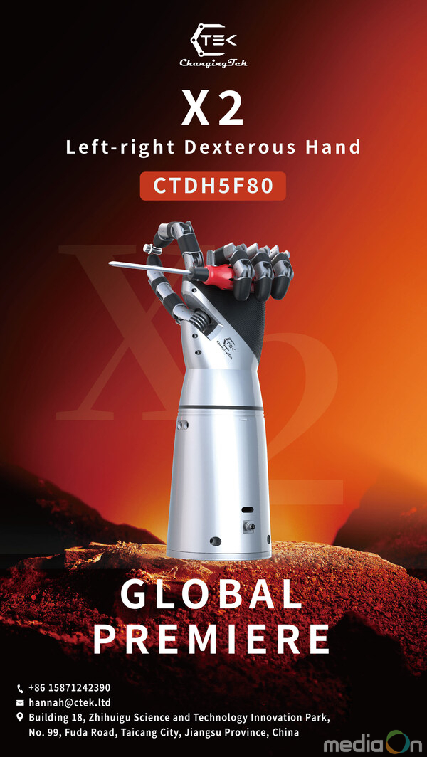 미디어온 관리자 기자 | 쑤저우, 중국 2026년 2월 27일 -- 로봇 엔드이펙터 솔루션 분야의 글로벌 선도기업 체인징텍 로보틱스 테크놀로지(쑤저우)(Changingtek Robotics Technology (Suzhou) Co., Ltd.)가 세계 최초의 적응형 'X2', 즉 좌우 양손 전환형 덱스트러스 핸드를 공식 출시했다. 혁신적인 텐던 구동식 전달 시스템을 기반으로 한 X2는 왼손과 오른손 구성 간 자율 재구성을 구현한다. 이번 혁신은 경량 설계, 운용 유연성, 기능적 자유도 측면에서 중대한 진전을 이루며 로봇 덱스트러스 핸드의 성능 기준을 새롭게 정의한다.