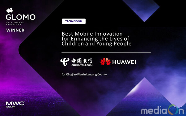 미디어온 관리자 기자 | 바르셀로나, 스페인 2026년 3월 11일 -- 화웨이(Huawei)와 차이나텔레콤(China Telecom)이 중국 란창현에서 진행 중인 칭자오 플랜(Qingjiao Plan)의 프로젝트로 MWC 2026 바르셀로나(MWC 2026 Barcelona)에서 열린 GSMA 글로모(GSMA GLOMO) 시상식에서 테크포굿(Tech4Good) 부문 어린이와 청소년의 삶 개선을 위한 최우수 모바일 혁신(Best Mobile Innovation for Enhancing the Lives of Children and Young People) 상을 받았다.